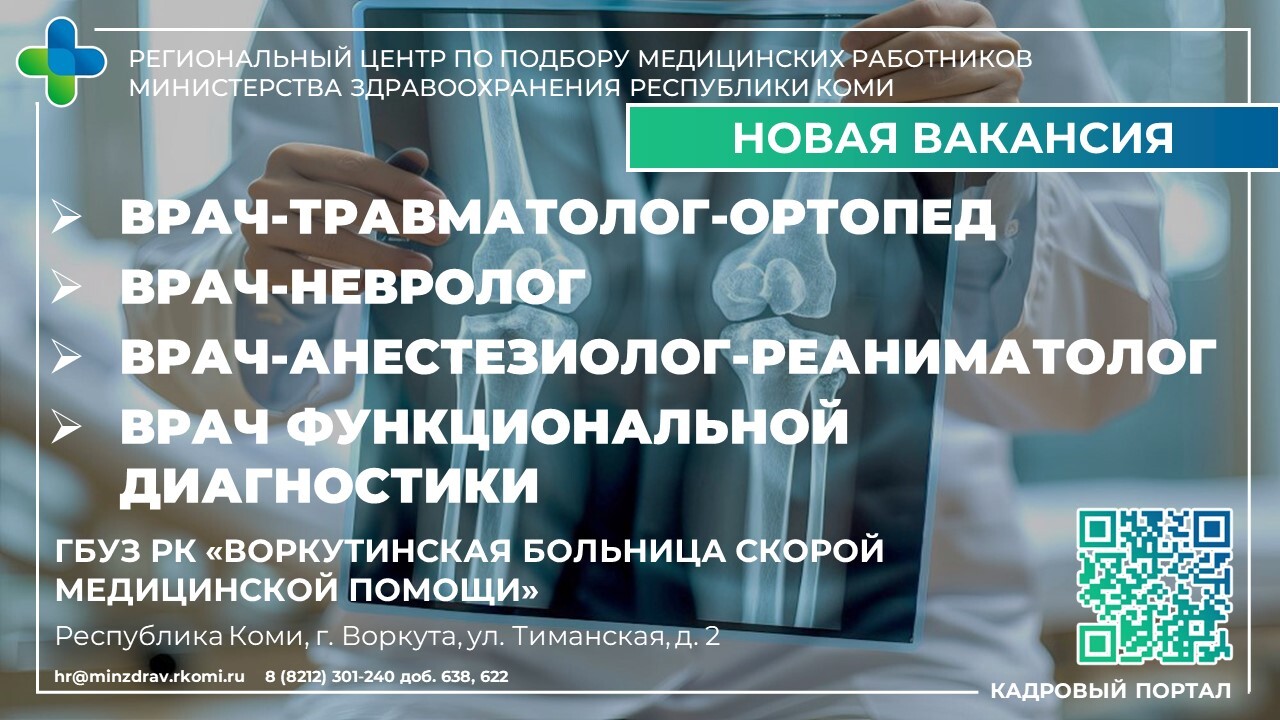 Вакансии в ГБУЗ РК «Воркутинская больница скорой медицинской помощи»: