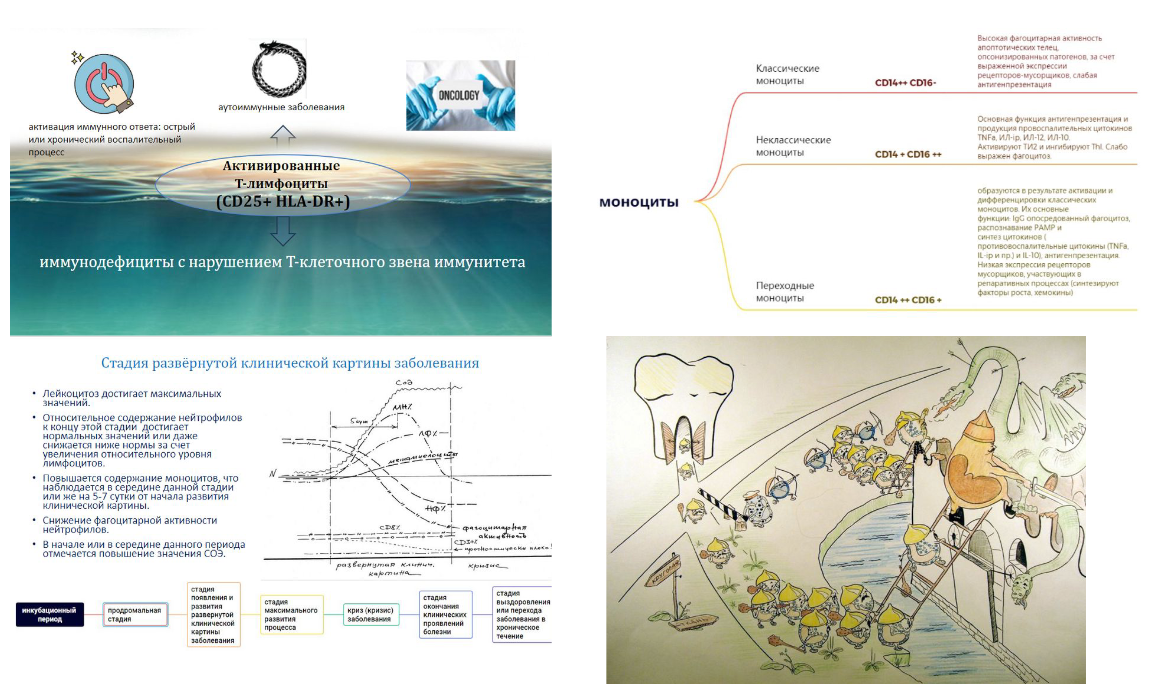 - особенности иммунограммы при основных иммунопатологических состояниях, в том числе в различные стадии воспалительного процесса;